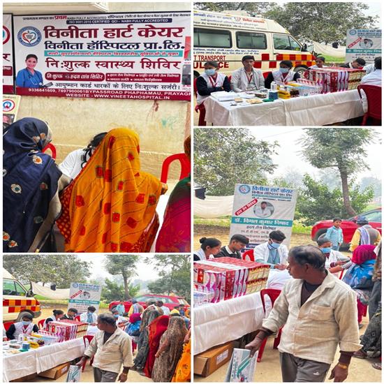 यूपी प्रयागराज । आम जनता को बेहतर स्वास्थ्य सुविधाएं उपलब्ध कराने के उद्देश्य से आज सत्यम मिश्रा क्षेत्रीय मंत्री काशी क्षेत्र के सौजन्य से विनीता हार्ट केयर एवं विनीता हॉस्पिटल प्राइवेट लिमिटेड की ओर से 14 दिसंबर को फूलपुर क्षेत्र के राम अभिलाष द्वारा राम उमरिमय टटी हरा देवनहरी में एक निशुल्क स्वास्थ्य शिविर का आयोजन किया गया।