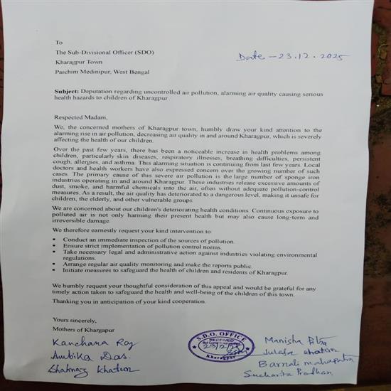 खड़गपुर में परेशान माताओं के एक ग्रुप ने एक लोकल सिल्क फैक्ट्री से होने वाले एयर पॉल्यूशन से लड़ने के लिए एक बड़ा कदम उठाया है। उनका कहना है कि सिलिकॉन मिली काली धूल हर सर्दी में हवा को गंदा कर रही है। यह धूल उनके बच्चों की सेहत को बहुत नुकसान पहुंचा रही है।