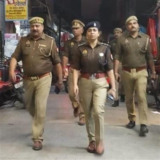 फ़ास्ट न्यूज़ इंडिया यूपी कासगंज l अमांपुर क़स्बा में शांति व्यवस्था एवं नव वर्ष को लेकर पुलिस सतर्क हैं। रविवार को पुलिस अधीक्षक अंकिता शर्मा सौरभ के दिशा निर्देश पर कानून व्यवस्था को चुस्त-दुरुस्त करने को सीओ सहावर शाहिदा नसरीन के नेतृत्व में थाना प्रभारी दिनेश सिंह ने अपनी टीम के साथ पैदल फ्लैग मार्च किया। पुलिस ने आम नागरिकों को सुरक्षा का भरोसा दिलाया। इस दौरान पुलिस ने संदिग्ध लोगों व बाइक सवारों की तलाशी भी ली। आमजनमानस से वार्तालाप कर शांति व्यव्स्था बनाए रखने की अपील की। इसके अतिरिक्त किसी भी प्रकार का अराजकता फैलाने वाले व्यक्तियों के विरुद्ध कठोर कार्रवाई की चेतावनी दी।उन्होंने सोशल नेटवर्किंग पर अराजकता फैलाने वालों पर पैनी नजर रखने की बात कही है। पैदल मार्च अमांपुर कोतवाली से प्रारंभ होकर सहावर रोड, ददवारा, बारहद्रारी, सराफा बाजार, गुड़मण्डी, एटा रोड, तिराहा आदि बाजारों में होते हुए कोतवाली परिसर पर जाकर सम्पन्न हुआ। इस दौरान कस्बा इंचार्ज अवधेश कुमार दुबे, एसआई राकेश यादव, एसआई मनोज यादव, एसआई परमेश्वर सिंह, एसआई विक्रम सिंह, एसआई जगदीश कुमार, एसआई हरिप्रसाद सिंह, जितेंद्र कुमार, ब्रजेश कुमार, मोन्टी कुमार, कुलदीप कुमार, सुनील कुमार, संजीव कुमार, उदयवीर सिंह, सुशील कुमार, नेहा, मीनू आदि पुलिस कर्मी मौजूद रहे। रिपोर्ट मोहित गुप्ता 151022222