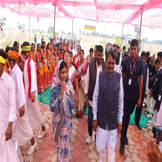अतिथियों के आगमन पर विद्यालय परिवार द्वारा मंगल तिलक लगाकर, पुष्पगुच्छ भेंट कर एवं माल्यार्पण कर हार्दिक स्वागत, वंदन एवं अभिनंदन किया गया। स्काउट-गाइड के छात्र-छात्राओं द्वारा उद्घोष के साथ अतिथियों को मंच तक लाया गया।