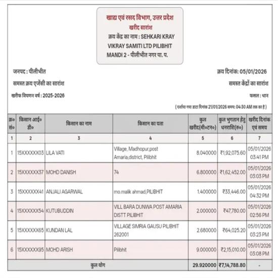 पीलीभीत में पीसीएफ (उत्तर प्रदेश सहकारी संघ) के धान क्रय केंद्रों पर बड़े पैमाने पर फर्जीवाड़े का सनसनीखेज खुलासा हुआ है। जिले के विभिन्न केंद्रों पर सरकारी रिकॉर्ड में दर्ज हजारों क्विंटल धान मौके से गायब मिला। आरोप है कि यह घोटाला पीसीएफ के जिला प्रबंधक के संरक्षण में हुआ, जिसमें किसानों के सत्यापन से लेकर खरीद प्रक्रिया तक हर स्तर पर धांधली की गई। सूत्रों के अनुसार, दर्जनों फर्जी किसानों की सूची तैयार की गई, जिनके पते और भू-अभिलेख संदिग्ध पाए गए। इन फर्जी पते के आधार पर सरकारी पोर्टल पर पंजीकरण कर करोड़ों रुपये की धान खरीद कागजों में दर्ज कर ली गई। वास्तविक किसानों को इसका कोई लाभ नहीं मिला और सरकारी धन का दुरुपयोग किया गया। जांच में यह भी सामने आया कि बिचौलियों और केंद्र प्रभारियों की मिलीभगत से कागजों पर फर्जी तरीके से धान की खरीद दिखाई गई, जबकि वास्तव में धान केंद्रों तक पहुंचा ही नहीं। इससे सरकारी रिकॉर्ड और भौतिक स्टॉक के बीच भारी अंतर पाया गया। मामला सामने आने के बाद प्रशासन में हड़कंप मच गया है। एआर कोऑपरेटिव प्रदीप सिंह ने गंभीर अनियमितताओं की पुष्टि करते हुए बताया कि विभाग को प्रारंभिक जानकारी मिल चुकी है और गायब स्टॉक तथा फर्जी खरीद के आरोपों की गहन जांच कराई जाएगी। उन्होंने स्पष्ट किया कि इस घोटाले में संलिप्त पाए जाने वाले किसी भी कर्मचारी या अधिकारी के खिलाफ कठोर दंडात्मक कार्रवाई की जाएगी। फिलहाल जिले भर के पीसीएफ धान क्रय केंद्रों की स्थिति चिंताजनक बनी हुई है। जांच के बाद घोटाले की परतें और खुलने की संभावना है, जिससे कई बड़े नामों पर शिकंजा कस सकता है। जियाउल हक खान 151173981
