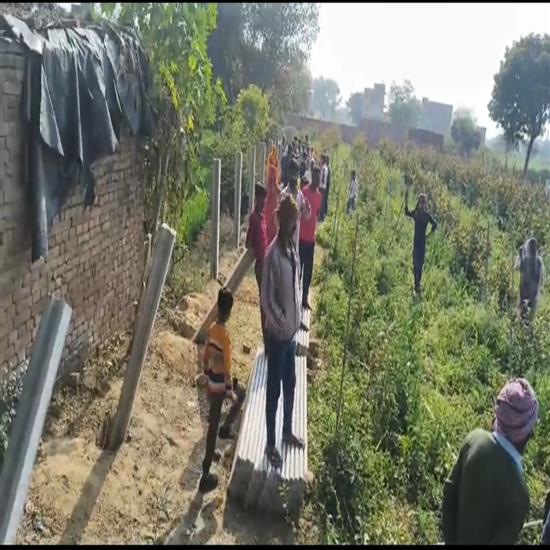 इटावा में जमीन विवाद, बाउंड्री वॉल बनाकर कब्जे की कोशिश
