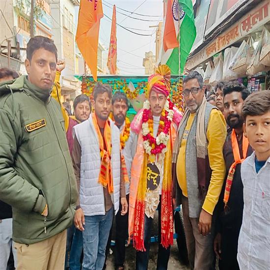 फ़ास्ट न्यूज इंडिया यूपी बुलंदशहर जहांगीराबाद आगामी समय में शिवरात्रि का पर्व नजदीक हैं। जहांगीराबाद के मोहित इस वर्ष दूसरी बार 501 लीटर गंगाजल के साथ नन्दी कांवड़ उठाने का संकल्प लिए हुए हैं। रविवार को भव्य स्वागत यात्रा के साथ मोहित की रवानगी हुई। बताते चलें कि नगर के मोहल्ला लोधान निवासी मोहित चारधाम गंगाजल यात्रा के लिए भव्य रूप से रविवार को रवाना हुए। इस अवसर पर मुख्य मार्ग पर डीजे, ढोल-नगाड़ों और हर-हर महादेव के जयघोष के बीच श्रद्धालुओं ने उन्हें भावभीनी विदाई दी। यात्रा को लेकर क्षेत्र में धार्मिक उल्लास का माहौल देखने को मिला। मोहित द्वारा 501 लीटर पवित्र गंगाजल लाने का संकल्प लिया गया है। गंगाजल यात्रा के शुभारंभ अवसर पर दर्जनों महिला-पुरुष श्रद्धालु उपस्थित रहे। सभी ने मोहित को फूल-मालाएं पहनाकर, तिलक लगाकर तथा मिठाई खिलाकर शुभकामनाएं दीं।