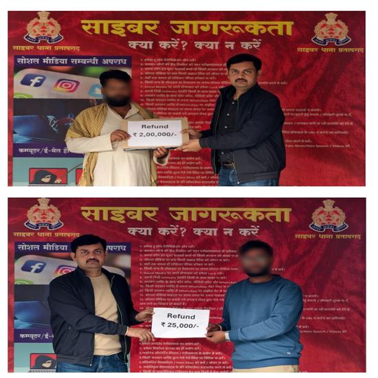 फास्ट न्यूज इंडिया यूपी प्रतापगढ़। जनपद में साइबर अपराध के विरुद्ध चलाए जा रहे अभियान के अंतर्गत साइबर पुलिस प्रतापगढ़ को उल्लेखनीय सफलता प्राप्त हुई है। पुलिस अधीक्षक प्रतापगढ़ दीपक भूकर के कुशल निर्देशन तथा नोडल अधिकारी साइबर अपर पुलिस अधीक्षक पूर्वी शैलेन्द्र लाल एवं सहायक नोडल अधिकारी साइबर सहायक पुलिस अधीक्षक/क्षेत्राधिकारी नगर प्रशान्त राज के निकट पर्यवेक्षण में जनपदीय साइबर सेल एवं साइबर क्राइम थाना प्रतापगढ़ की टीम ने साइबर ठगी के 22 मामलों में पीड़ितों की कुल ₹9,32,938/- की धनराशि उनके खातों में वापस कराई है। यह कार्रवाई एनसीआरपी पोर्टल तथा पीड़ितों द्वारा दिए गए प्रार्थना पत्रों की गहन जांच के उपरांत की गई। जांच के दौरान यह पाया गया कि ठगी यूपीआई, इंटरनेट बैंकिंग, क्रेडिट कार्ड फ्रॉड एवं अन्य ऑनलाइन माध्यमों से की गई थी। साइबर सेल टीम द्वारा त्वरित एवं प्रभावी कार्रवाई करते हुए धनराशि को रिकवर कर पीड़ितों को राहत प्रदान की गई। धनराशि वापस मिलने पर सभी पीड़ितों ने जनपदीय पुलिस अधिकारियों, साइबर सेल एवं साइबर क्राइम थाना प्रतापगढ़ की टीम के प्रति आभार व्यक्त किया।विवरण इस प्रकार है—कुल शिकायतें: 22 कुल वापस कराई गई राशि: ₹9,32,938/- ठगी के तरीके: यूपीआई, इंटरनेट बैंकिंग, क्रेडिट कार्ड फ्रॉड एवं अन्य साइबर पुलिस प्रतापगढ़ ने आमजन से अपील की है कि ऑनलाइन लेनदेन के दौरान पूर्ण सतर्कता बरतें। किसी भी अनजान कॉल, लिंक, ओटीपी, पिन, क्यूआर कोड अथवा स्क्रीन शेयर के अनुरोध से बचें। साइबर ठगी की किसी भी घटना की स्थिति में तुरंत साइबर हेल्पलाइन 1930 पर संपर्क करें अथवा www.cybercrime.gov.in पर शिकायत दर्ज कराएं। डिजिटल प्लेटफॉर्म पर सतर्क रहें — एक सही निर्णय आपको बड़ी ठगी से बचा सकता है। रिपोर्ट विशाल रावत 151019049