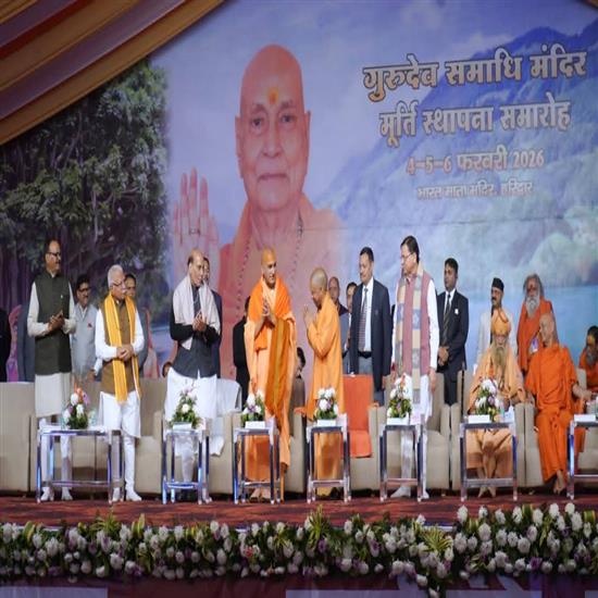 उत्तराखंड,हरिद्वार स्थित सप्तऋषि मैदान में आयोजित त्रिदिवसीय “गुरुदेव समाधि मन्दिर–मूर्ति स्थापना महोत्सव” (04, 05 एवं 06 फरवरी 2026) का "समापन" श्रद्धा, दिव्यता एवं भव्यता के साथ सम्पन्न हुआ। यह आयोजन भारत माता मन्दिर के संस्थापक, करुणामूर्ति, भगवद्पादाचार्य आदि शंकराचार्य जी की परम्परा के दिव्य संवाहक, वैदिक सनातन धर्म संस्कृति के प्रखर प्रसारक पद्मभूषण, निवृत्त-शंकराचार्य, ब्रह्मलीन परम पूज्य श्री स्वामी सत्यमित्रानन्द गिरि जी महाराज की दिव्य स्मृतियों को चिरस्थायी एवं अक्षुण्ण स्वरूप प्रदान करने हेतु आयोजित किया गया।यह त्रिदिवसीय महोत्सव भारत माता मन्दिर–समन्वय सेवा ट्रस्ट एवं भारत माता जनहित ट्रस्ट के अध्यक्ष, श्रीमत्परमहंस परिव्राजकाचार्य, श्रोत्रिय-ब्रह्मनिष्ठ, अनन्तश्रीविभूषित जूनापीठाधीश्वर, आचार्यमहामण्डलेश्वर परम पूज्य श्री स्वामी अवधेशानन्द गिरि जी महाराज ("पूज्य आचार्यश्री जी") के पावन सान्निध्य में सम्पन्न हुआ।