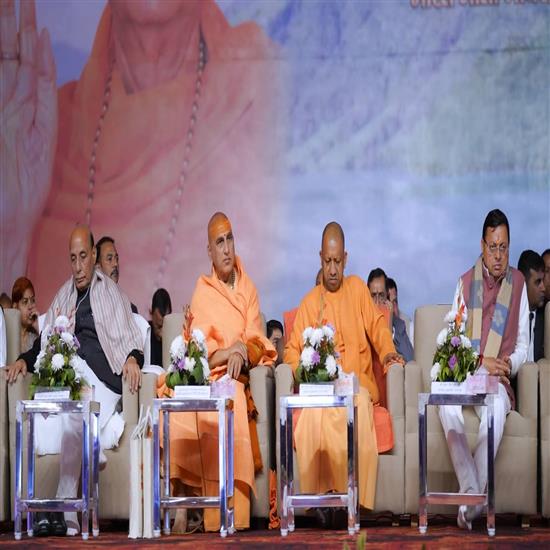 आज के कार्यक्रम में मुख्य अतिथि के रूप में केन्द्रीय रक्षामंत्री आदरणीय श्री राजनाथ सिंह जी, उत्तर प्रदेश के माननीय मुख्यमंत्री परम पूज्य महंत योगी आदित्यनाथ जी की विशेष उपस्थित रही।विशिष्ट अतिथि के रूप में, उत्तराखण्ड के माननीय मुख्यमंत्री श्री पुष्कर सिंह धामी जी, केन्द्रीय उर्जा तथा आवास एवं शहरी मंत्री आदरणीय श्री मनोहर लाल जी, परम पूज्य कार्ष्णि पीठाधीश्वर अनन्तश्रीविभूषित स्वामी श्री गुरूशरणानन्द जी महाराज,परम पूज्य निर्वाणपीठाधीश्वर आचार्यमहामण्डलेश्वर अनन्तश्रीविभूषित स्वामी श्री विशोकानन्द जी महाराज,श्रीरामजन्मभूमि न्यास के कोषाध्यक्ष परम पूज्य स्वामी श्री गोविन्ददेव गिरि जी महाराज, उत्तराखण्ड विधानसभा की अध्यक्षा आदरणीया श्रीमती ऋतु खंडूरी जी, उत्तर प्रदेश के माननीय उप-मुख्यमंत्री आदरणीय श्री ब्रजेश पाठक जी, मध्य प्रदेश के नगरीय विकास एवं संसदीय कार्य मंत्री आदरणीय श्री कैलाश विजयवर्गीय जी, उत्तराखण्ड के पूर्व-मुख्यमंत्री एवं पूर्व-केन्द्रीय मंत्री डॉ. रमेश पोखरियाल निशंक जी, कैबिनेट मंत्री आदरणीय श्री गणेश जोशी जी, हरिद्वार के सांसद आदरणीय श्री त्रिवेन्द्र सिंह रावत जी की गरिमामयी उपस्थिति रही।उत्तर प्रदेश के माननीय मुख्यमंत्री गोरक्ष पीठाधीश्वर श्रीमहंत योगी आदित्यनाथ जी ने अपने उद्बोधन में कहा कि पूज्य गुरुदेव स्वामी सत्यमित्रानन्द गिरि जी महाराज ने समन्वय, सद्भाव और एकात्मता का दिव्य मंत्र देकर राष्ट्र को एक नई दिशा प्रदान की। उनका संदेश था—सबको साथ लेकर चलना ही सच्ची राष्ट्रसेवा है। उन्होंने वनवासी और आदिवासी समाज के उत्थान हेतु अनेक कल्याणकारी कार्य किए तथा समाज के वंचित और पीड़ित वर्गों तक पहुँचकर सेवा का आदर्श स्थापित किया। “एक भारत, श्रेष्ठ भारत” की भावना को साकार करते हुए उन्होंने गाँव-गाँव जाकर अन्न, अक्षर और औषधि के माध्यम से जनकल्याण का कार्य किया। उनका जीवन त्याग, सेवा और राष्ट्रभक्ति का प्रेरणादायी प्रतीक रहा है।देश के माननीय रक्षामंत्री आदरणीय श्री राजनाथ सिंह जी ने अपने प्रेरक उद्बोधन ने कहा कि भगवद्पादाचार्य परम्परा के दिव्य संवाहक, भारत माता मन्दिर के संस्थापक, पद्मभूषण से अलंकृत, करुणामूर्ति ब्रह्मलीन परमपूज्य श्री स्वामी सत्यमित्रानन्द गिरि जी महाराज ने अपना सम्पूर्ण जीवन सनातन संस्कृति, राष्ट्रचेतना और मानवता की सेवा के लिए समर्पित कर दिया। उन्होंने आध्यात्मिक साधना को समाज सेवा से जोड़कर एक ऐसा जीवन-दर्शन दिया, जिसने असंख्य लोगों को सेवा, त्याग और करुणा के मार्ग पर अग्रसर किया। उनका तपस्वी जीवन और दिव्य चिन्तन सदैव समाज के लिए प्रेरणा का अमूल्य स्रोत बना रहेगा। जूनापीठाधीश्वर, आचार्यम