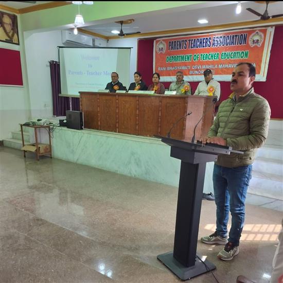 दिनांक 09 फरवरी 26 को रानी भाग्यवती देवी महिला महाविद्यालय के अध्यापक शिक्षा विभाग में महाविद्यालय स्तर प्राचार्या प्रोफेसर पारुल त्यागी जी के निर्देशन एवं मार्गदर्शन मे शिक्षक अभिभावक सम्मेलन का आयोजन किया गया। उक्त सम्मेलन में शिक्षक अभिभावक संगठन का चुनाव किया गया।जिसमें अध्यक्ष पद हेतु अर्जुन सिंह जी, सचिव पद हेतु नासिर एवं सदस्य मोहम्मद शाहिद, श्री इंतजार, संजीव कुमार सिंह, शीतल देवी, मारूफ, सुरेश पाल, शिव कुमार, पूनम रानी महाविद्यालय के शिक्षक गण डॉ. शीरिन फातिमा एवं श्री मुकुल पवार सर्व सम्मति से मनोनीत किए गए।कार्यक्रम का शुभारंभ विभाग अध्यक्ष एवं कार्यक्रम समन्वयक डॉ. सुरेश सिंह, कार्यवाहक प्राचार्या प्रो. मंजू चौधरी आइ.क्यू.ए.सी. को ऑर्डिनेटर प्रो. मंजू अरोड़ा प्रबंध समिति के वरिष्ठ सदस्य प्रवीण गुप्ता एवं शिक्षक अभिभावक संघ के मनोनीत अध्यक्ष, सचिव एवं समस्त सदस्यों ने मां वाणी के समक्ष दीप प्रज्वलित करके किया। बी. एड. विभागाध्यक्ष एवं कार्यक्रम समन्वयक डॉ. सुरेश सिंह जी ने सभी अभिभावकों का स्वागत किया। उन्होंने अभिभावक -शिक्षक संघ के उद्देश्यों पर प्रकाश डालते हुए कहा कि यह सम्मेलन अभिभावक और शिक्षकों को निकट लाने की एक सुंदर परंपरा है और एक दूसरे से हमको समय समय पर सुझाव ग्रहण करने चाहिए। सम्मेलन में उपस्थित हुए अभिभावकों ने भी सभी के समक्ष अपने विचार साझा कियें और अपने बच्चों की समस्याओं का समाधान किया। शिक्षक अभिभावक संघ के मनोनीत अध्यक्ष जी ने अपने वक्तव्य में कहां की छात्राओं को परिश्रम करके आगे बढ़ना चाहिए और अपने माता पिता का नाम रोशन करना चाहिए।आई.क्यू.ए.सी. कोऑर्डिनेटर प्रो. मंजू अरोड़ा ने छात्राओं को प्रेरित करते हुए कहा की समस्याएं हमेशा रहती है लेकिन बच्चों के भविष्य के लिए यह समय दोबारा नहीं लौटता अतः बच्चों को पढ़ने के लिए हर माता पिता को प्रेरित करना चाहिए। कार्यवाहक प्राचार्य प्रोफेसर मंजू चौधरी ने छात्राओं को विद्यालय में नियमित रहने के लिए तथा अभिभावकों को शिक्षकों से समय-समय पर संपर्क बनाए रखने के लिए कहा।प्रबंध समिति के वरिष्ठ सदस्य श्री प्रवीण गुप्ता जी ने बच्चों को अनुशासन में रहने के लिए कहा। उन्होंने सभी अभिभावको से आहवान किया कि बच्चों को समय देना और उनको सुनना अति आवश्यक है। धन्यवाद ज्ञापन विभाग अध्यक्ष डॉ. सुरेश सिंह जी द्वारा किया गया। कार्यक्रम का सुंदर संचालन एम.एड.विभाग अध्यक्षा डॉ. नज्मुन्निसा ने किया। सभी अभिभावकों ने उक्त कार्यक्रम में बढ़-चढ़कर अपनी सहभागिता की। कार्यक्रम को सफल बनाने में विभाग के सभी प्राध्यापकगणों डॉ.शीरीन फातिमा, मुकुल पवार, प्रताप सिकदर, रेनू कुमारी, कु.रुकैया, कु. हिमानी एवं कु. अनुष्का 