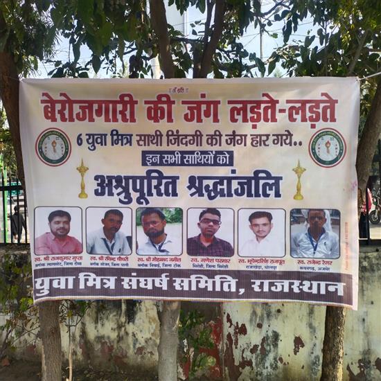 इस मौके पर संघर्ष समिति के प्रदेश अध्यक्ष संजय मीणा, विजय मीणा, राजकुमार कटारा, प्रशांत जांगिड़, दीपक शर्मा धौलपुर, नरेशी बाई, संतोष सुथार, अनेक युवा मित्र मौजूद रहे। देखे राजस्थान से योगेन्द्र शर्मा की रिपोट
