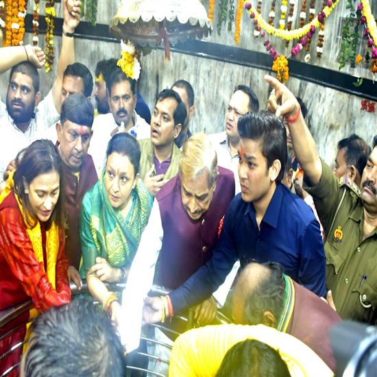 यूपी प्रतापगढ़। महाशिवरात्रि के अवसर पर राज्यसभा में विपक्ष के उपनेता प्रमोद तिवारी तथा कांग्रेस विधानमंडल दल की नेता आराधना मिश्रा मोना ने डॉ. विजयश्री सोना व राघव मिश्र के साथ बाबा घुइसरनाथ धाम पहुंचकर दर्शन-पूजन किया। मंदिर के मुख्य द्वार पर दोनों नेताओं ने कुछ देर रुककर अपनी बारी की प्रतीक्षा की।इसके बाद श्रद्धालुओं के “बाबा की जय” के जयघोष के बीच गर्भगृह पहुंचकर बाबा को बेलपत्र, दूध, दही, धतूरा, अक्षत व पुष्प अर्पित कर विधिवत जलाभिषेक किया। वीआईपी मूवमेंट को देखते हुए बाबा धाम परिसर में पुलिस एवं प्रशासन की सुरक्षा व्यवस्था हाई अलर्ट पर रही। देखें प्रतापगढ़ से विशाल रावत की ख़ास रिपोर्ट