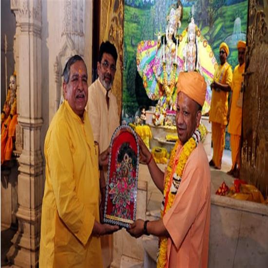 मथुरा। प्रदेश के मुख्यमंत्री गोरक्षपीठाधीश्वर पूज्य योगी आदित्यनाथ ने शनिवार (07 मार्च) सांय 4.30 बजे श्रीकृष्ण जन्मस्थान के दर्शन वैदिक मंत्रोच्चारण एवं श्रीहरिःनाम संकीर्तन के मध्य किये।श्रीकृष्ण-जन्मस्थान सेवा-संस्थान के सचिव श्री कपिल शर्मा एवं प्रबंध समिति के सदस्य श्री गोपेश्वरनाथ चतुर्वेदी ने योगी आदित्यनाथ जी का स्वागत प्रसादी-पटुका ओढ़ाकर एवं पूजाचार्यो ने मंगलार्चन-स्वस्तिवाचन के साथ योगी जी का स्वागत किया। वैदिक मंत्रोच्चारण एवं मृदंग-मजीरे की मंगल ध्वनि के मध्य सर्वप्रथम योगी आदित्यनाथ भगवान श्रीकेशवदेव जी महाराज को माल्यार्पण-चन्दन अर्पित करने के उपरान्त, अष्टभुजा मॉं योगमायाजी के दर्शन-पूजन कर श्रीगर्भ-गृह में प्रवेश किया। श्रीगर्भ-गृह में पूज्य योगी जी ने तुलसी एवं पुष्प के साथ अनन्त लीलापुरुषोत्तम भगवान श्रीकृष्ण की पूजा-अर्चना वैदिक मंत्रोचारण के साथ की। भागवत-भवन में पूजन के उपरान्त श्रीकृष्ण-जन्मभूमि के पवित्र लीलामंच पर भजन-गायन, रसिया-गायन के कार्यक्रम में झूमते-नाचते हजारों श्रद्धालुजन योगी जी महाराज को अपने मध्य पाकर अभिभूत हो जय-जयकार करने लगे। श्रद्धालुओं के मध्य जाकर श्री योगी जी ने वृहद मात्रा में पुष्प-वर्षा, झूमते-नाचते जय-जयकार करते श्रद्धालुओं पर की। योगीजी से प्रसाद रूप में चॉकलेट पाकर बच्चे भी प्रसन्न हो रहे थे।श्रीकृष्ण-जन्मभूमि के संपूर्ण परिसर राधे-राधे, जय श्रीराम और हर हर महादेव के जयघोष से गुंजायमान हो रहा था। श्रीकृष्ण-जन्मभूमि पर साक्षात प्रभु श्रीराम, भगवान शिव और भगवान श्रीकृष्ण तीनों की कृपानुभूति हो रही थी। रिपोर्ट नन्द किशोर शर्मा 151170853