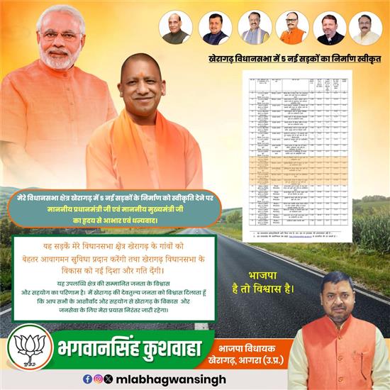 इन महत्वपूर्ण सड़कों के निर्माण की स्वीकृति मिलने पर माननीय प्रधानमंत्री जी एवं माननीय मुख्यमंत्री जी का हृदय से आभार एवं धन्यवाद।