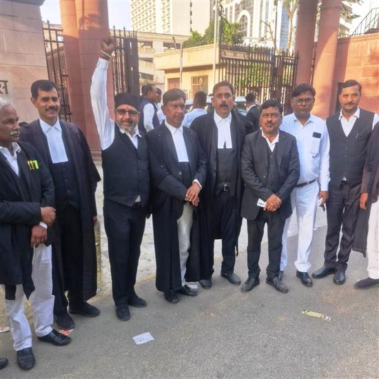 लखनऊ में विधेयक की मांग को लेकर नारेबाजी करते अधिवक्ता