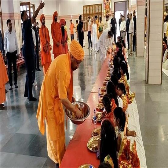 मुख्यमंत्री योगी ने गोरखनाथ मंदिर में पारंपरिक रीति-रिवाजों के साथ कन्या पूजन किया गया। उन्होंने मां सिद्धिदात्री की पूजा की और नौ छोटी कन्याओं के पैर धोकर, उन्हें तिलक लगाकर, चुनरी ओढ़ाकर और भोजन (प्रसाद) कराकर आशीर्वाद लिया, जो नारी शक्ति के प्रति उनके सम्मान को दर्शाता है।