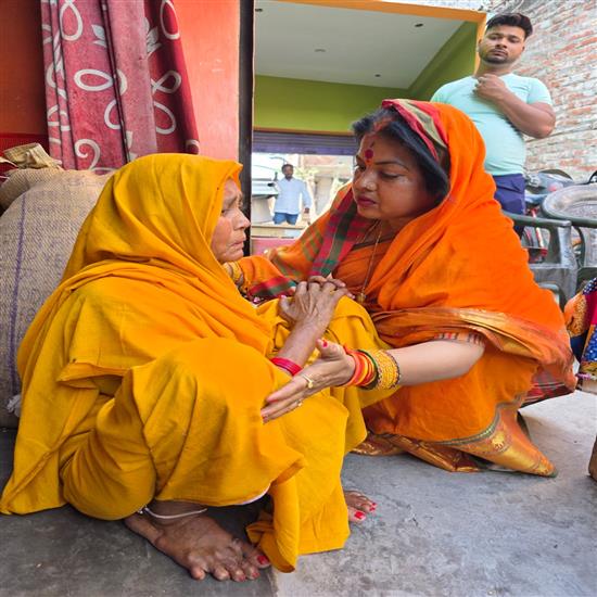प्रयागराज मऊआइमा। भारतीय जनता पार्टी की गंगापार जिलाध्यक्ष निर्मला पासवान ने रविवार को मऊआइमा के छाता निवासी बूथ अध्यक्ष राजकरण पटेल के घर पहुंची और उनकी मां के आकस्मिक निधन पर शोक जताया इसी प्रकार मऊआइमा ग्रामीण मंडल के मंत्री केशव पासी के घर पहुंचकर भाजपा जिलाध्यक्ष ने उनकी पारिवारिक सदस्य सीता पासी के निधन पर भी शोक व्यक्त किया तथा इसी तरह मऊआइमा बूथ अध्यक्ष मूलचंद मौर्या के निधन पर उनके घर पहुंच कर निर्मला पासवान ने उनके परिजनों को ढांढस बंधाया मीडिया प्रभारी उमेश तिवारी के अनुसार इस अवसर पर मुख्य रूप से महेन्द्र तिवारी, श्याम सुंदर दुबे, जय प्रकाश पटेल शिव बाबू मोदनवाल, महेश माली आदि मौजूद रहे। रिपोट - प्रदीप मिश्रा 151045438