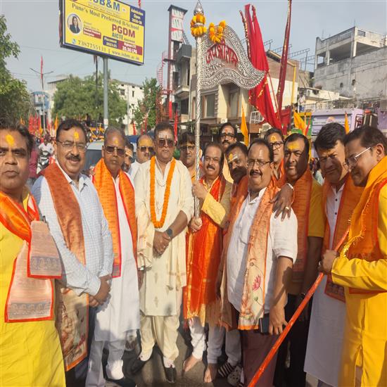 प्रभातफेरी में मारवाड़ी समाज में श्री समाज अग्रवाल समाज, ब्राह्मण मंडल समाज के लोगों ने 1100 केसरिया ध्वज लेकर चल रहे थे।