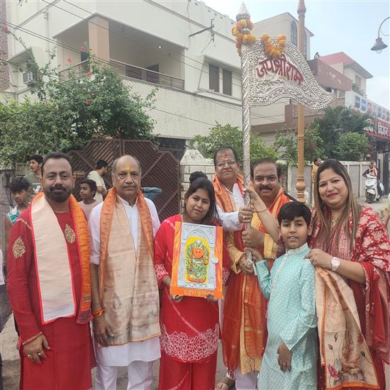 यात्रा में संकट मोचन रूपी रथ की भव्य झांकी के साथ भक्त सिद्धार्थ कपूर, विवेक शर्मा, रघुदेव अग्रवाल, जागृत गाड़ोदिया, अमित अग्रवाल, प्रभात खेतान, अवधेश अग्रवाल के कंधे पर पालकी में गणेश जी, हनुमान जी व शंकर जी की भव्य झांकी चल रही थी।