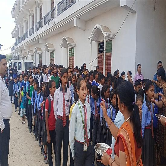 प्रयागराज जनपद के प्रतापपुर क्षेत्र में स्थित आर.एन. पब्लिक स्कूल, सेमरी एवं इसकी दूसरी शाखा उग्रसेनपुर में नवीन शिक्षा सत्र 2026-27 के प्रथम दिवस पर विद्यार्थियों का पारंपरिक तरीके से विजय तिलक लगाकर भव्य स्वागत किया गया।