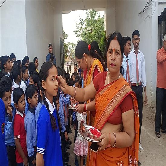 विद्यालय के अध्यापकों द्वारा सभी छात्रों को तिलक लगाते हुए उन्हें पुरानी उपलब्धियों को पीछे छोड़ते हुए नए उत्साह और आत्मविश्वास के साथ हर चुनौती का सामना करने के लिए प्रेरित किया गया। इस अवसर पर बच्चों में नई ऊर्जा और जोश देखने को मिला। और वहीं विद्यालय के डायरेक्टर श्री राजेश पांडे ने विद्यार्थियों को संबोधित करते हुए कहा कि शिक्षा को बोझ नहीं, बल्कि एक चुनौती के रूप में स्वीकार करें। साथ ही उन्होंने बच्चों को मोबाइल फोन से दूरी बनाए रखने की भी सलाह दी।