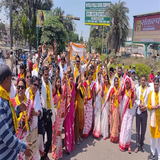 फास्ट न्यूज़ इंडिया उत्तराखंड रूद्रपुर। आदर्श इंद्रा कालोनी में आध्यात्मिक ऊर्जा और श्रद्धा का अनुपम संगम देखने को मिला, जहाँ श्री श्री अखण्ड महानाम संकीर्तन के शुभारंभ से पूर्व निकाली गई भव्य कलश एवं शोभा यात्रा ने पूरे क्षेत्र को भक्ति के रंग में सराबोर कर दिया। शंख ध्वनि और हरि नाम के उद्घोष के बीच निकली इस यात्रा में सैकड़ों श्रद्धालुओं ने पूरे उत्साह के साथ प्रतिभाग किया। इस धार्मिक आयोजन में पूर्व विधायक एवं कांग्रेस नेता राजकुमार ठुकराल ने भी शिरकत की और श्रद्धालुओं का उत्साहवर्धन करते हुए धर्म मार्ग पर चलने का संदेश दिया।