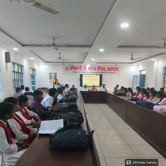 हंडिया, प्रयागराज। हंडिया पी.जी. कॉलेज, हंडिया में मिशन शक्ति 5.0 के अंतर्गत दिनांक 06 अप्रैल 2026 को महिला प्रकोष्ठ के तत्वावधान में महिला सशक्तीकरण एवं सरकारी योजनाएं विषय पर एक जागरूकता कार्यक्रम का आयोजन किया गया। इस कार्यक्रम का संचालन भूगोल विभाग द्वारा किया गया, जिसका उद्देश्य छात्र-छात्राओं को विभिन्न सरकारी योजनाओं की जानकारी देकर उन्हें जागरूक एवं सशक्त बनाना था।
