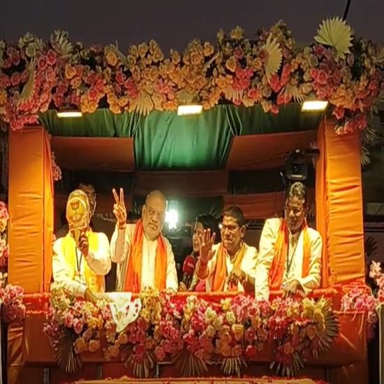हज़ारों लोग सड़कों के दोनों ओर उन्हें स्वागत करने के लिए जमा हुए। BJP समर्थकों ने "जय श्री राम" के नारे लगाए, जबकि अमित शाह, एक विशेष रूप से डिज़ाइन किए गए वाहन पर खड़े होकर, पूरे रास्ते भीड़ का अभिवादन करते रहे।