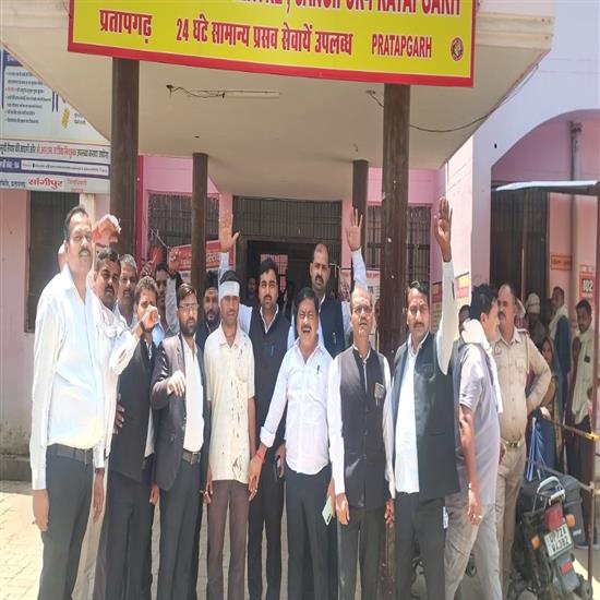 साथी पर हमले को लेकर आक्रोश जताते वकील