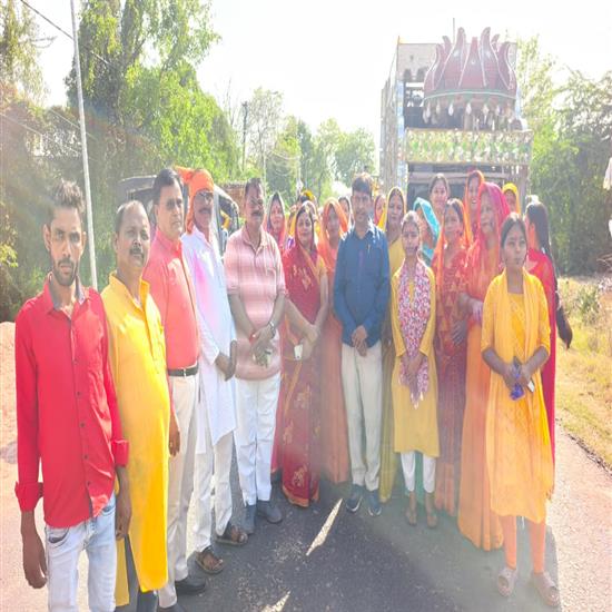फास्ट न्यूज इंडिया यूपी लालगंज, प्रतापगढ़। नगर पंचायत के शीतलमऊ वार्ड स्थित पहलवान साहब वीर बाबा में शुक्रवार को श्रीराम दरबार एवं हनुमान जी महराज की मूर्ति स्थापना को लेकर नगर में भव्य शोभा यात्रा निकाली गयी। शोभा यात्रा में शामिल श्रद्धालु अबीर गुलाल उड़ाते धाम से इन्दिरा चौक होते हुए श्रीहनुमत निकेतन व रायबरेली रोड के परमानंद आश्रम से जंगली वीर बाबा धाम पहुंचे। विभिन्न मंदिरों में पूजन अर्चन के साथ श्रद्धालुओं ने शोभा यात्रा में महावीर हनुमान जी महाराज व श्रीराम के जयघोष से वातावरण को भक्तिमय बना दिया। चौक समेत विभिन्न स्थानों पर शोभा यात्रा में व्यापारियों तथा नगर के लोग भगवान श्रीराम दरबार पर पुष्पवर्षा भी करते दिखे। वहीं विधिविधान से वैदिक मंत्रोच्चारण के मध्य दूसरे पहर भगवान श्रीराम दरबार व हनुमान जी महाराज की मूर्ति स्थापना हुई। धार्मिक आयोजन को लेकर भण्डारे में देर शाम तक श्रद्धालुओं ने भगवान का प्रसाद ग्रहण किया। शोभा यात्रा में चेयरपर्सन प्रतिनिधि संतोष द्विवेदी व रूरल बार के राष्ट्रीय अध्यक्ष ज्ञानप्रकाश शुक्ल भी शामिल हुए। संयोजक समिति के छविराज सिंह, विक्रम सिंह, प्रमोद सिंह, पंकज सिंह, राज सिंह, गोलू सिंह, सौरभ सिंह ने भगवान का विधिविधान से पूजन अर्चन किया। कार्यक्रम में महिला श्रद्धालुओं ने भक्ति संगीत की भी मनोरम प्रस्तुतियां दी। इस मौके पर रामचंद्र त्रिपाठी, अर्जुन सिंह, शैलेष सिंह, संतोष सिंह, अंशू सिंह, चंदन पाण्डेय, सोनू मिश्र आदि मौजूद रहे। रिपोर्ट विशाल रावत 151019049
